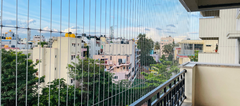 Invisible grills for bird control in Hyderabad provide an effective, modern, and visually appealing solution to prevent birds from entering balconies, windows, and open areas. Made from high-tensile stainless steel cables, these grills create a strong and durable barrier that stops birds from nesting and leaving droppings, helping maintain cleanliness and hygiene. Their transparent design preserves natural light, ventilation, and clear outdoor views, ensuring your living space remains bright and open.